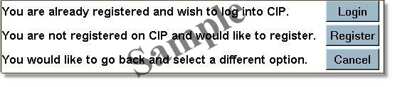 Unless you are a returning CIP customer, click on REGISTER. You will be presented with a page requesting personal information: |