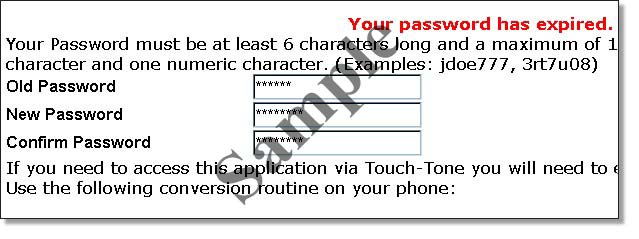 Log back in to the CIP site with the temporary password. If your login is successful, you will be informed that your temporary password has expired, and asked to supply a new permanent password. Click SUBMIT after supplying your temporary and permanent passwords in their respective boxes. |