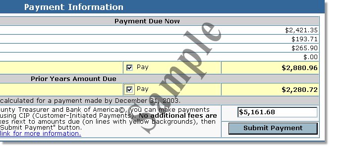 Click on the "Submit Payment" in the Payment Information section of the tax statement page. |